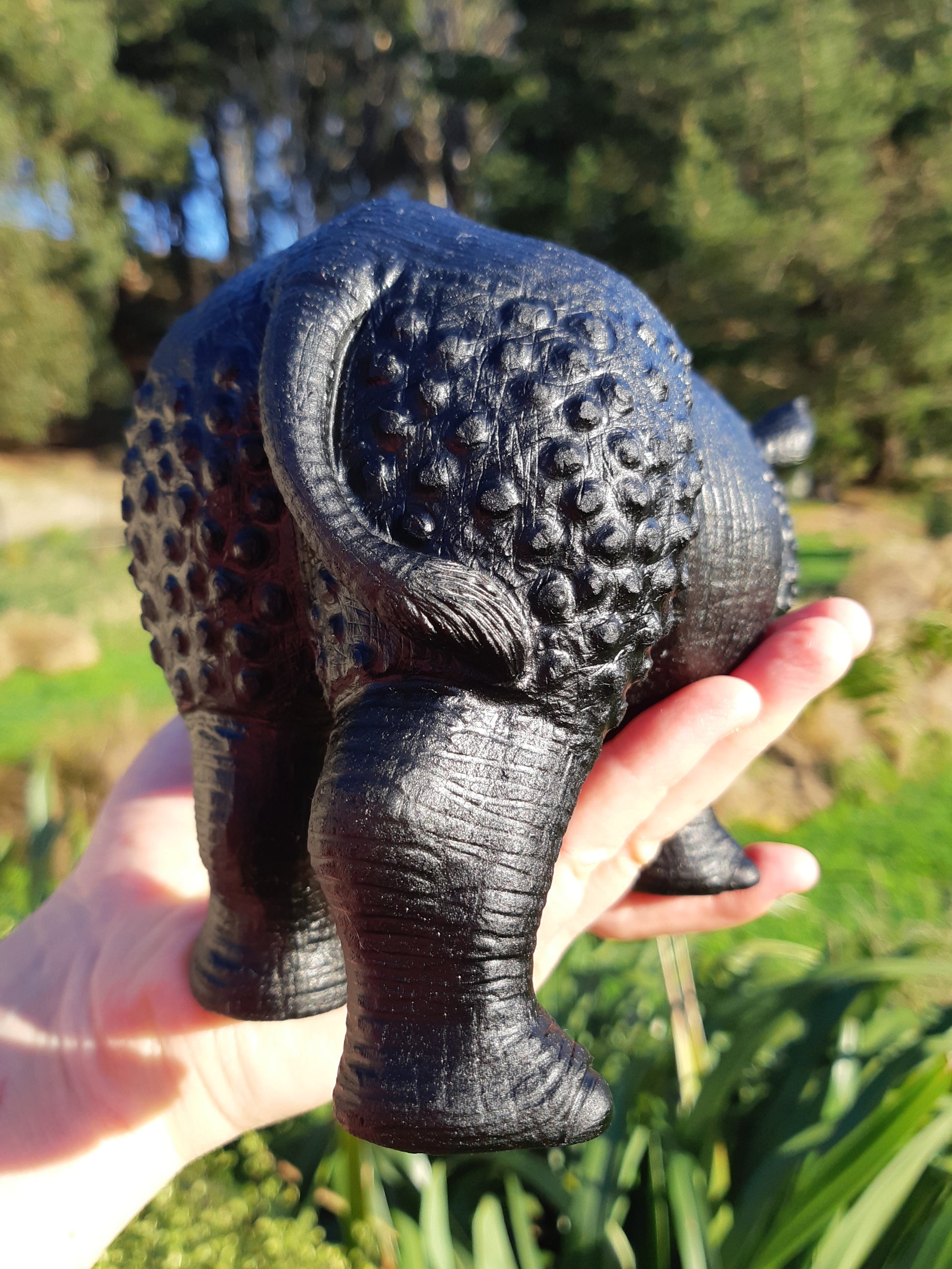 Absolutely stunning huge black obsidian rhino.