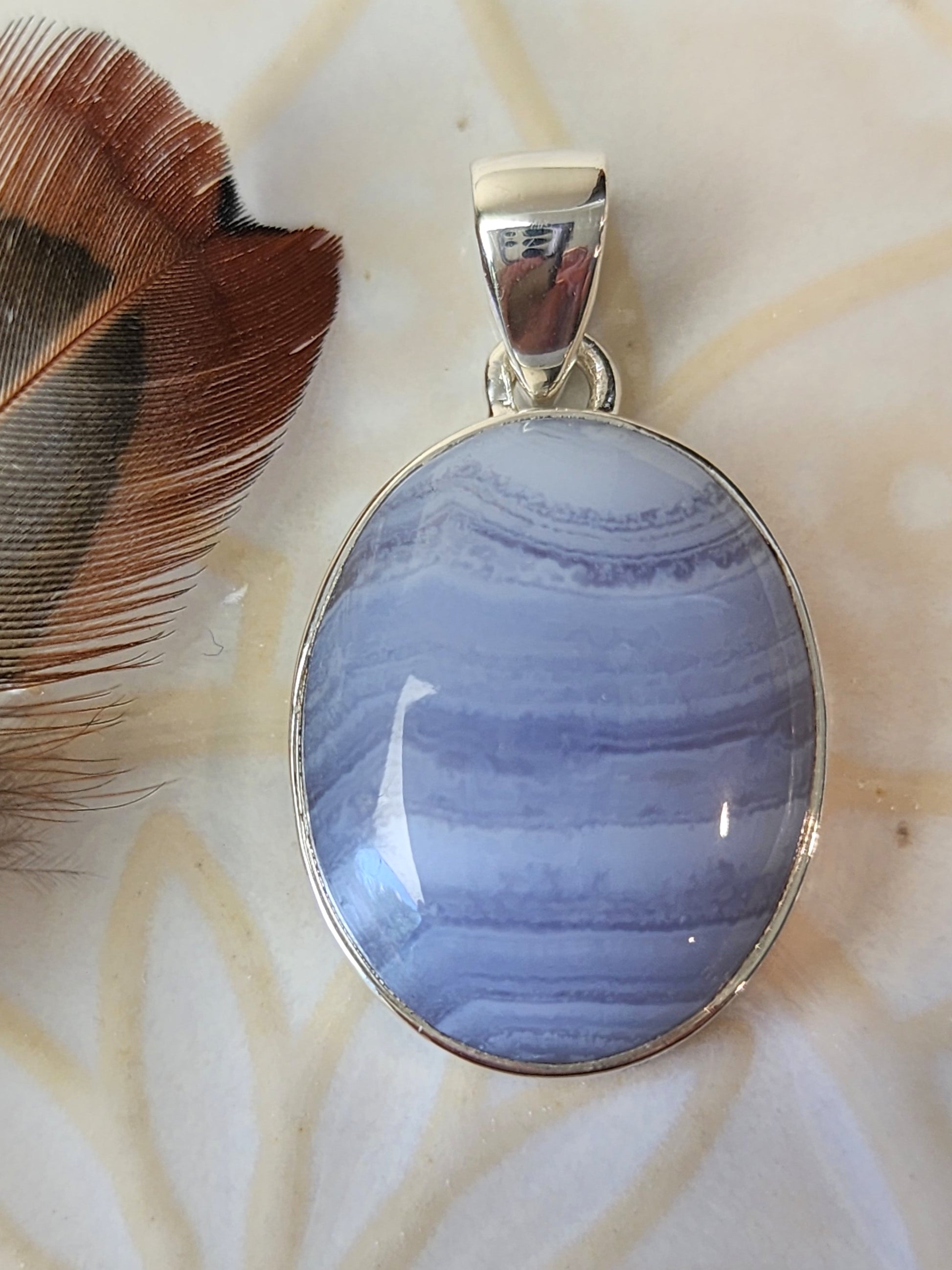 Blue lace agate from Namibia. Handcrafted in Stirling Silver S925.